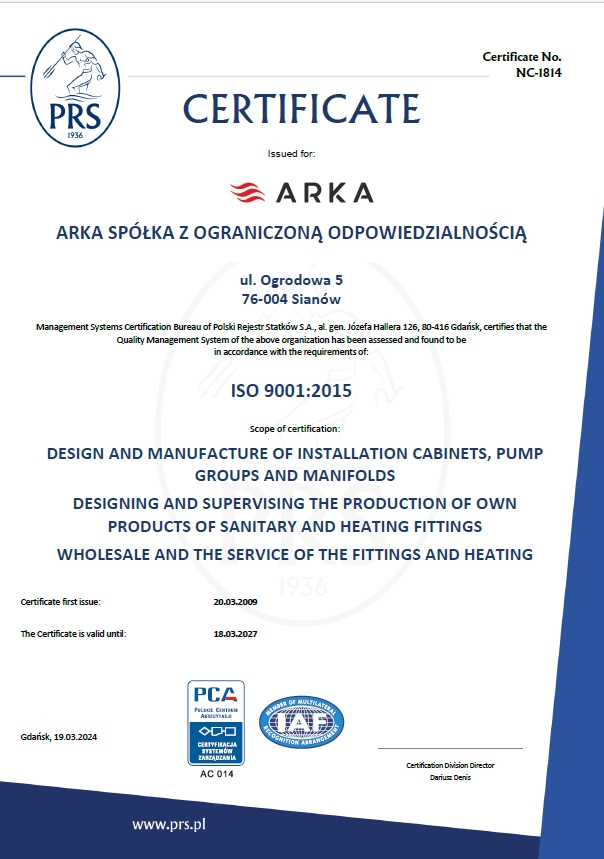CALIDO/DURO - PRZYŁĄCZA DOLNE GRZEJNIKOWE/ZAWORY KĄTOWE ANTYKAMIENNE certyfikat zgodności