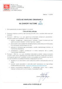 Duro - warunki gwarancji zawory kątowe