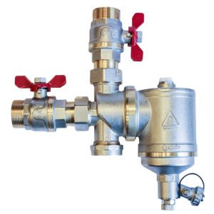 Separator magnetyczny z filtrem i osadnikiem 1 1/4"+ zawory kulowe S30 z ruchomą nakrętką W/Z 5/4" z motylkiem