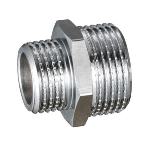 Nypel mosiężny redukcyjny GZ/GZ, polerowany, chromowany
