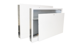 Szafki podtynkowe z miejscem na listwę sterującą i z wysuwaną maskownicą