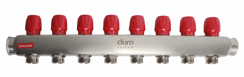 Belka do rozdzielacza z zaworami regulacyjnymi z pokrętłami czerwonymi