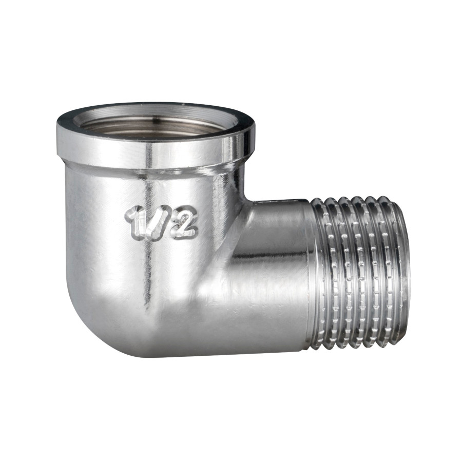 Kolano mosiężne GW/GZ, polerowane, chromowane