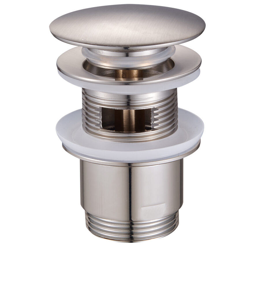 Korek KLIK-KLAK okrągły, duży, mosiężny, z przelewem, z tuleją mosiężną, 1 1/4", stal szczotkowana