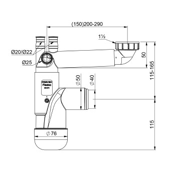 PÓŁSYFON 1 1/2" ZLEWOZMYWAKOWY, BUTELKOWY, Z RAMIENIEM, POJEDYNCZY, PRZYŁĄCZE DO PRALKI I ZMYWARKI, PODŁĄCZE DO PRZELEWU, PODŁĄCZENIE 40/50 mm