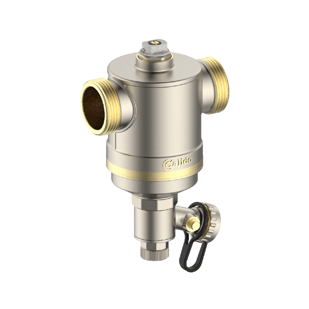 Separator zanieczyszczeń Calido to nowoczesne urządzenie przeznaczone do efektywnego oczyszczania czynnika grzewczego w instalacjach, z minimalnym wpływem na wydajność przepływu. Dzięki zaworowi spustowemu z możliwością obrotu 360° usunięcie zgromadzonych zanieczyszczeń jest szybkie i wygodne. Ponadto ręczny odpowietrznik umożliwia łatwe usunięcie powietrza z układu.