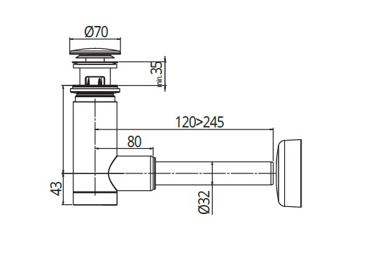 Syfon umywalkowy czyszczony z góry z korkiem-klik-klak