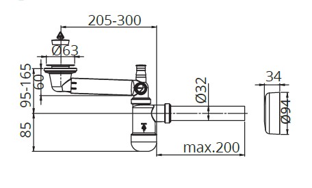 SYFON UMYWALKOWY, BUTELKOWY, TELESKOPOWY FI 32 mm, OSZCZĘDZAJĄCY MIEJSCE, PRZYŁĄCZE DO PRALKI I PRZELEWU, KOREK GUMOWY, RURA ODPŁYWOWA I ROZETA