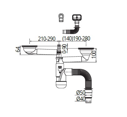 Syfon zlewozmywakowy podwójny