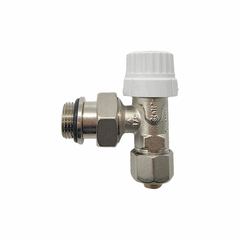 ZAWÓR GRZEJNIKOWY, TERMOSTATYCZNY, ZASILAJĄCY, KĄTOWY, Z NASTAWĄ WSTĘPNĄ PRZEJŚCIÓWKĄ NA PEX I O-RINGIEM SERIA ESKIMOS