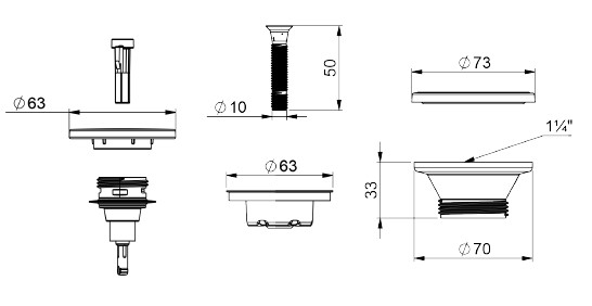 Akcesoria do syfonów, Korki pop-up, klik-klak i części